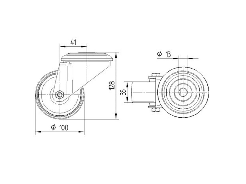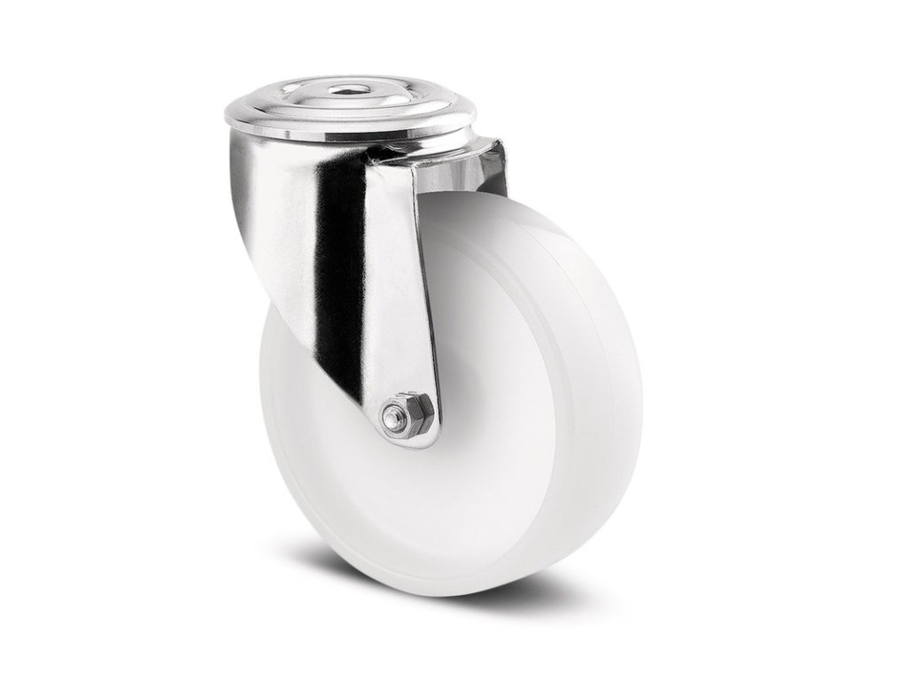 Pojezdové kolečko nerezové pro transportní zařízení 100mm, otočné, otvor pro čep, 8470UOO100P30-13