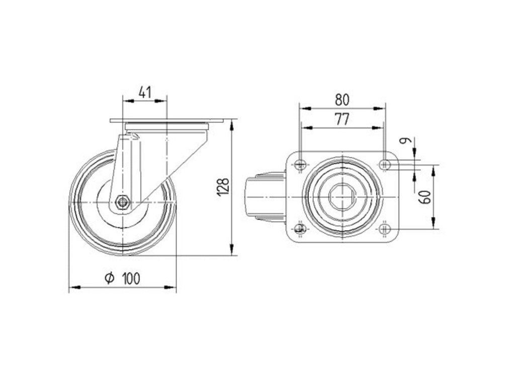 Pojezdové kolečko nerezové pro transportní zařízení 100mm, otočné, plotýnka, 8470UFX100P62 LW46 šedá
