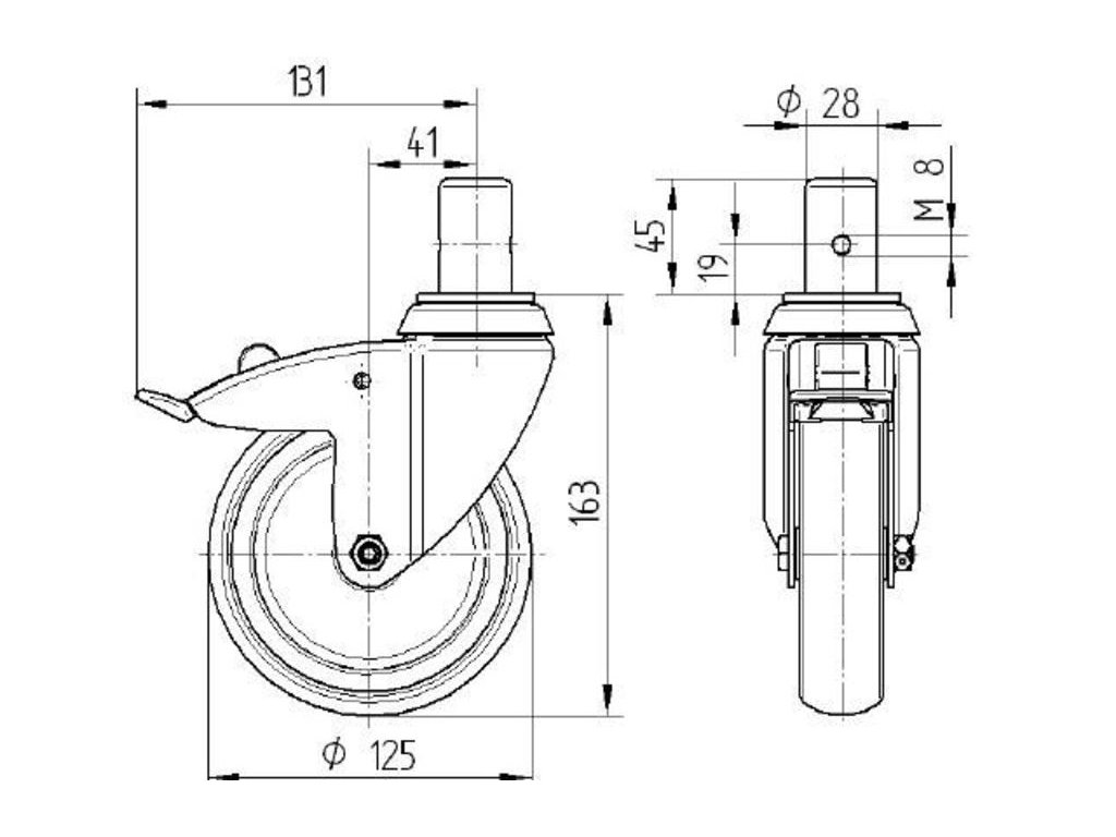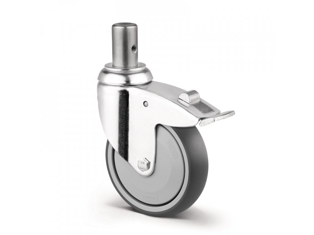 Kolečko pro nemocniční lůžka 125mm, s brzdou, uchycení s pevným čepem, 2477PJP125R05-28
