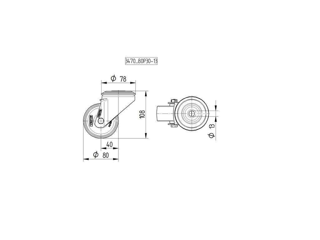 Kolečko pro transportní zařízení 80mm, otočné, otvor pro čep, 3470UOO080P30-13